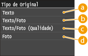 Você pode selecionar a qualidade de imagem ideal para a cópia dependendo do tipo de documento, como documentos só de texto, documentos com gráficos e tabelas ou fotos de revistas.