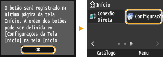 Se a tela Início estiver cheia e o botão de atalho não puder ser adicionado, use <Configs.Tela Início> para excluir botões registrados ou espaços em branco.