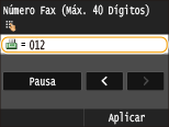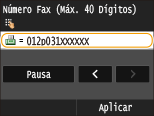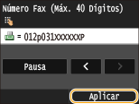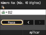 Toque em <Pausa> para inserir uma pausa no final do número de fax conforme necessário.