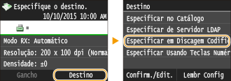 Para usar a discagem codificada, o destino já deve estar registrado no catálogo de endereço. Registrando destinos no Catálogo de endereços