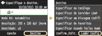 DESLIGANDO a máquina ou configurando <Limitar Novos Destinos> a <Ativado> exclui os últimos destinos e desabilita este recurso. Limitando os destinos disponíveis