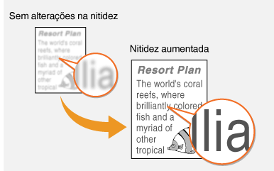 Você pode ajustar a nitidez da imagem. Aumente a nitidez para dar mais nitidez a linhas e textos borrados, ou diminua a nitidez para melhorar a aparência de fotos de revistas.