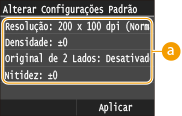 As configurações padrão são configurações exibidas sempre que você LIGA a máquina, ou pressiona