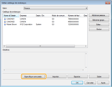O local para salvar os dados do catálogo de endereço pode ser alterado para qualquer pasta arbitrária. Você não pode usar o catálogo de endereço se você não tem permissão para acessar a pasta onde o catálogo de endereço está salvo. Neste caso, mude o local de armazenamento do catálogo de endereço.