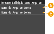 Selecione <Nome do Arquivo Curto> ou <Nome do Arquivo Longo>