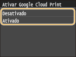 Ative a função Google Cloud Print da máquina. Também é possível desativar a função Google Cloud Print da máquina.