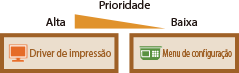 Se uma configuração de impressão é especificada tanto pelo driver da impressora como pelo painel de operação da máquina, a especificação do driver de impressora tem precedência sobre a do painel de operação.