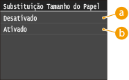 Selecione para alternar entre a impressão em papel de tamanho A4 ou Carta se um destes papéis estiver carregado mas o outro não. Por exemplo, se você está imprimindo um documento de tamanho Carta, mas há somente papel A4 carregado na máquina, a máquina irá imprimir seu documento em papel A4.