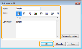 Clicando em [Editar] ao lado direito de [Adicionar] na tela exibida na etapa 1, você pode alterar o nome, ícone ou comentário dos perfis que você registrou anteriormente. Você não pode editar os perfis pré-registrados.