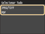 Toque em <JPEG/TIFF> ou <PDF>.