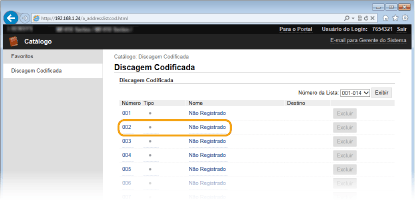 Você pode excluir um destino registrado clicando no botão [Excluir] correspondente.