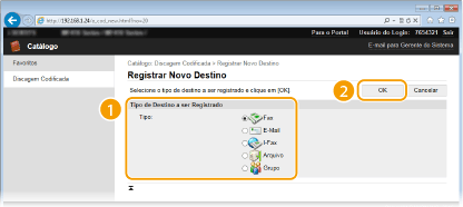 Selecione [Tipo de Destino a ser Registrado] e clique em [OK].