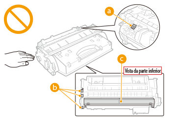 ) ou nos contatos elétricos ( ). Para evitar arranhar a superfície do cilindro dentro da máquina ou expô-la a luz, não abra a tampa protetora do cilindro ( ).![]() Não remova o cartucho de toner desta máquina ou do saco protetor desnecessariamente.
