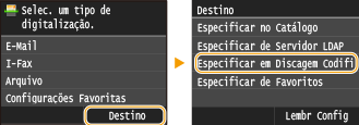 Para usar a discagem codificada, o destino já deve estar registrado no catálogo de endereço. Registrando destinos no Catálogo de endereços