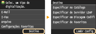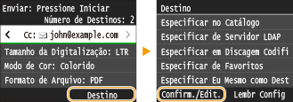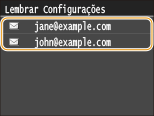 Você pode selecionar um destino entre os últimos três destinos. Ao especificar um destino usado previamente, a máquina também define as mesmas configurações de Digitalização que você usou na última vez que enviou documentos àquele destino.