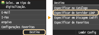 Se o seu escritório tem um servidor LDAP instalado, você pode especificar um destino utilizando as informações de usuário no servidor. Acesse o servidor LDAP através da máquina para procurar as informações de usuário apropriadas e especificá-las como destino.