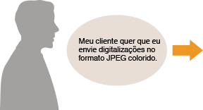 Especifique o endereço de e-mail de seu cliente com <Formato de Arquivo> definido como <JPEG> para as configurações de digitalização e registre o endereço e a configuração como uma combinação em <Configurações Favoritas>. Depois, você pode facilmente usar esta combinação de configuração sempre que precisar. Registrando configurações de digitalização usadas com frequência (e-mail/I-Fax/pasta compartilhada/servidor FTP)