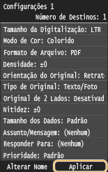 Verifique os detalhes das configurações a serem registradas e toque em <Aplicar>.