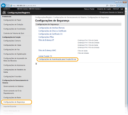 Quando a opção [Permitir] está especificada em [Envio de Arquivo]