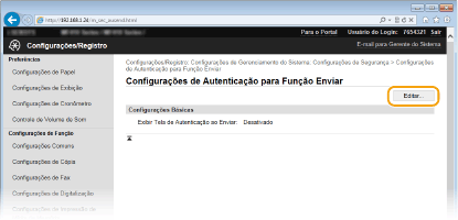 Nenhuma tela de autenticação é exibida quando e-mails ou I-Faxes são enviados. A autorização no servidor SMTP é realizada usando o nome de usuário e senha definidos em [Configurações de E-mail/I-Fax] Definindo as configurações de comunicação por e-mail/I-Fax.