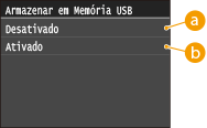 Desativa a função de ler os dados a partir de um dispositivo de memória USB. Os dados no dispositivo de memória USB não poderão ser impressos.