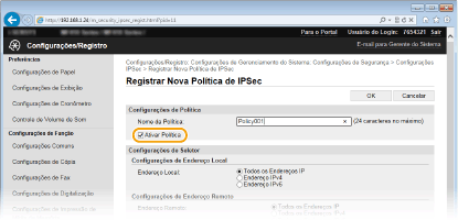 Na caixa de texto [Nome da Política], insira até 24 caracteres alfanuméricos para um nome usado para identificar a política.