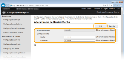 Para definir ou alterar a senha, marque a caixa de seleção e digite até 24 caracteres alfanuméricos para a nova senha nas caixas de texto [Senha] e [Confirmar]. |