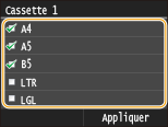 Vérifiez que seules les cases à cocher des formats de papier fréquemment utilisés sont cochées.