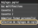 Appuyez sur <Bac multifonctions>, <Cassette 1> ou <Cassette 2>.
