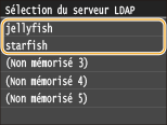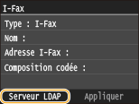 Le nom d'utilisateur, le numéro de fax ou l'adresse e-mail de l'utilisateur sélectionné, stocké sur le serveur LDAP, est copié dans le champ du destinataire.