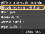 Le nom, les numéros de fax, les adresses e-mail, les noms d'entreprises et les services peuvent servir de critères de recherche de destinataires.