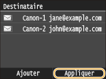 Répétez les étapes 7 à 9 jusqu'à ce que vous ayez enregistré tous les destinataires souhaités, puis appuyez sur <Appliquer>.