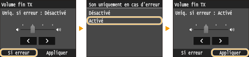Sélectionnez <Activé> (produire un son) ou <Désactivé> (ne pas produire un son).