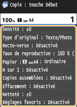 Appuyez sur l'option que vous souhaitez définir. Divers réglages de copie