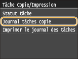 Si <Afficher le journal des tâches> est défini sur <Désactivé>, vous ne pouvez pas consulter le journal des tâches de copie. Afficher le journal des tâches