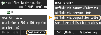 <Destinataire>  <Définir via composition codée>  Saisissez un numéro.