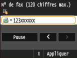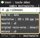 * Il est possible de combiner la spécification des 10 destinataires en utilisant un serveur LDAP et les touches numériques. Si vous utilisez les touches numériques et un serveur LDAP, vous pouvez définir 10 destinataires au total. Si, par exemple, vous avez défini sept destinataires à l'aide des touches numériques, vous pouvez définir les trois autres par le biais d'un serveur LDAP.