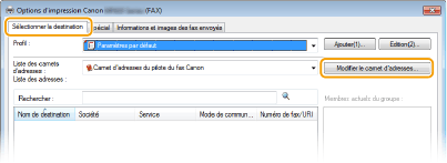 Cliquez sur l'onglet [Sélectionner la destination] [Modifier le carnet d'adresses].