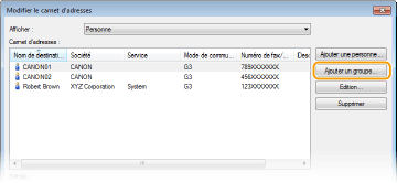 Pour modifier ou supprimer un destinataire enregistré, sélectionnez-le dans [Carnet d'adresses], puis cliquez sur [Edition] ou [Supprimer].