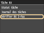 Si vous souhaitez vous connecter au serveur avant de recevoir automatiquement des I-Faxes, ou si vous souhaitez configurer l'appareil afin qu'il ne reçoive pas d'I-Faxes automatiquement, utilisez la méthode ci-dessous pour recevoir manuellement des I-Faxes.