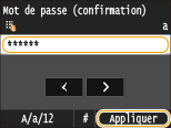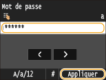 Saisissez le mot de passe au moyen des touches numériques, puis appuyez sur <Appliquer>.