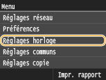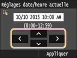 Définissez <Fuseau horaire> avant de définir la date et l'heure courantes. Si le réglage <Fuseau horaire> est modifié, la date et l'heure actuelles refléteront cette modification.