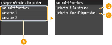 <Bac multifonctions> ne s'affiche pas si <Imprimante> a été sélectionné dans l'écran précédent (