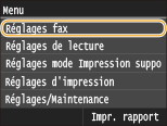 Tous les réglages relatifs à la fonction de télécopie répertoriés s'accompagnent d'une brève description. Les réglages par défaut sont signalés par une croix (