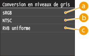 Cette section décrit les paramètres permettant de convertir des données de couleur en données de niveaux de gris.