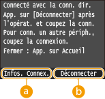 Si pendant une communication en connexion directe, la durée pendant laquelle aucune transmission de données entre l'appareil et le périphérique mobile prend un certain temps, il est possible que la communication se termine.
