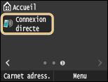 Dans l'écran Accueil, tapez sur <Connexion directe>. L'appareil bascule dans un mode vous permettant d'y connecter votre terminal mobile.