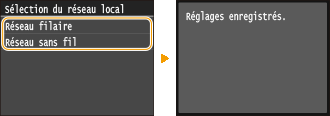 Appuyez sur <Réseau filaire> ou <Réseau sans fil>.