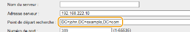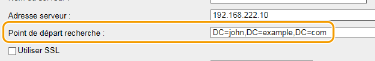 Spécifiez le nœud dans l'arborescence d'informations du répertoire (DIT) à partir duquel vous voulez lancer la recherche. En laissant la zone de texte vide, l'appareil lance automatiquement la recherche à partir de n'importe quel nœud.