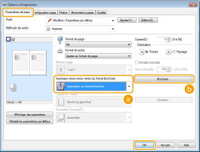 Sélectionnez [Impression au format brochure], dans [Impression recto/recto verso/au format brochure ]